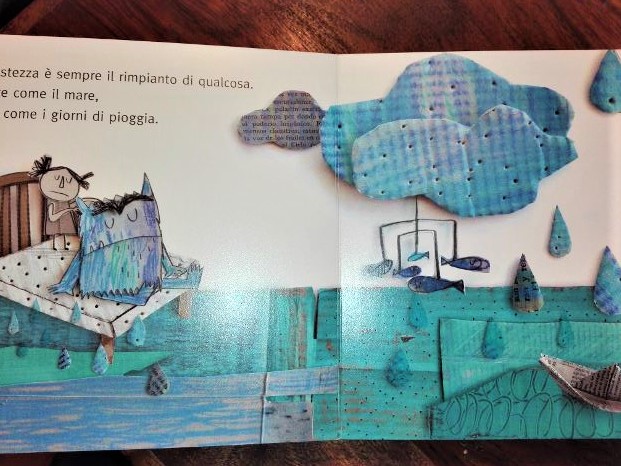 Sono letteralmente innamorata degli albi di Anna LLenas. E il motivo di questo amore è che l’autrice riesce a trattare temi importanti attraverso testi essenziali, diretti e illustrazioni fatte con materiale di riciclo ( tanti cartoni e cartoncini) che hanno tratti semplici, stilizzati.. che in un qualche modo ricordano molto i disegni realizzati dai bambini.