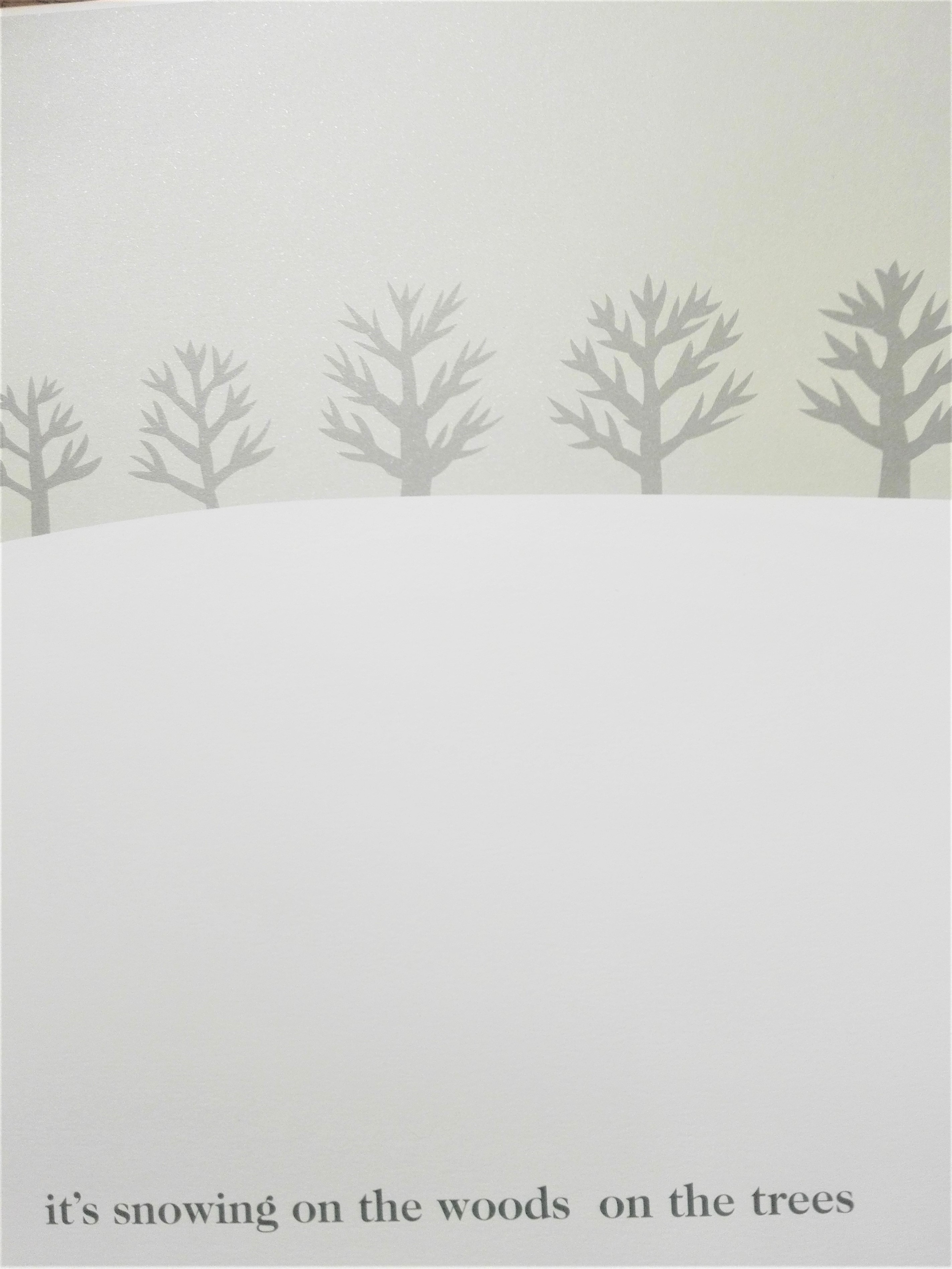 “WINTER” di Aoi Huber-Kono (Corraini Editore) è un libro che, con pochissime parole ed immagini essenziali, conduce il lettore nel suggestivo paesaggio invernale. A mano a mano che si sfogliano le pagine, si ha come l’impressione che tutti i sensi siano solleticati: il profumo del bosco e della pioggia, la sensazione di freddo sulla pelle, la vista abbagliata dal biancore della neve. Ce n’è talmente tanta di neve che viene voglia di assaggiarla. Fra le pagine si percepisce il silenzio della natura che dorme…