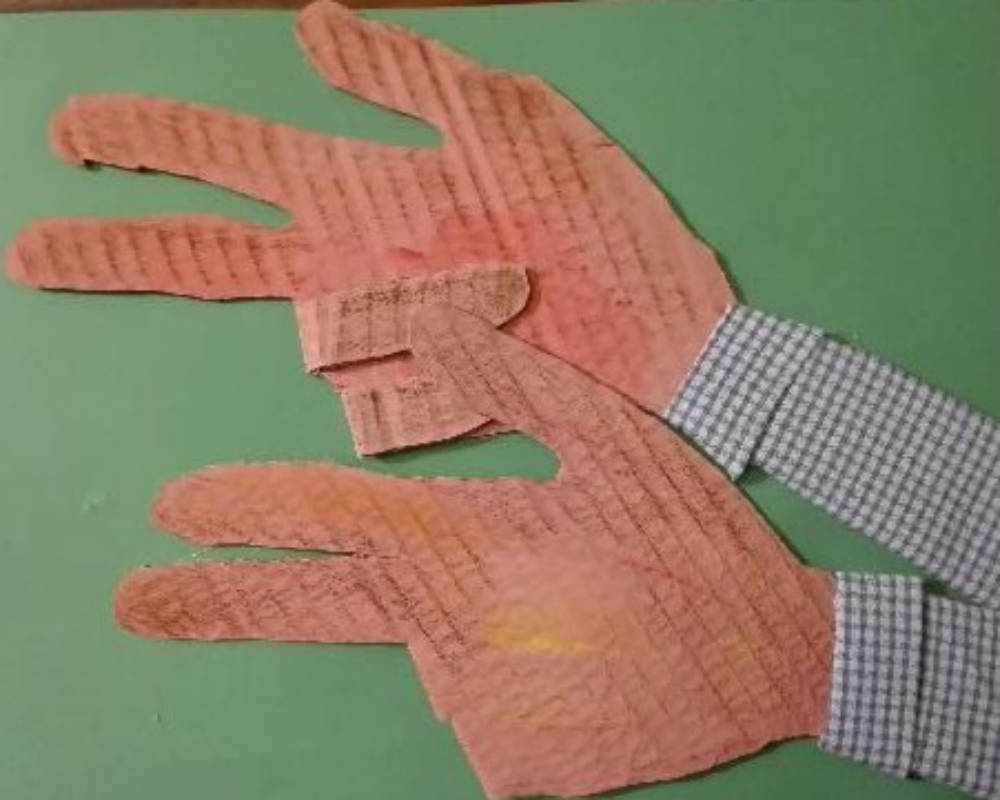 Penso che anche a scuola possa essere un divertente percorso laboratoriale: pensare a quante cose possono fare le mani e poi documentare attraverso disegni, costruzioni con materiale di riciclo, foto…
