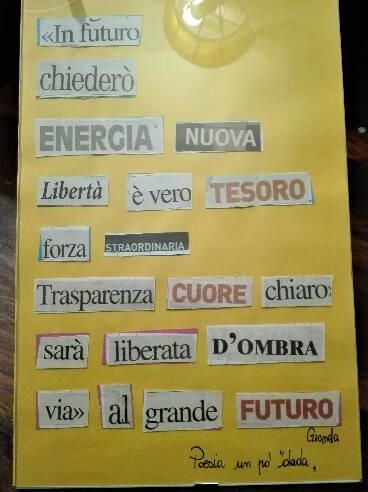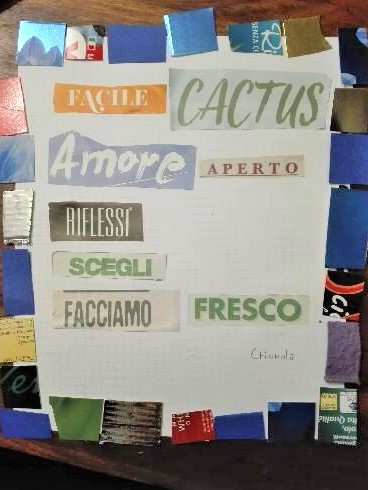 incollare le parole e…se si è particolarmente soddisfatti della propria poesia dadaista, incorniciare con materiale di riciclo o altro.