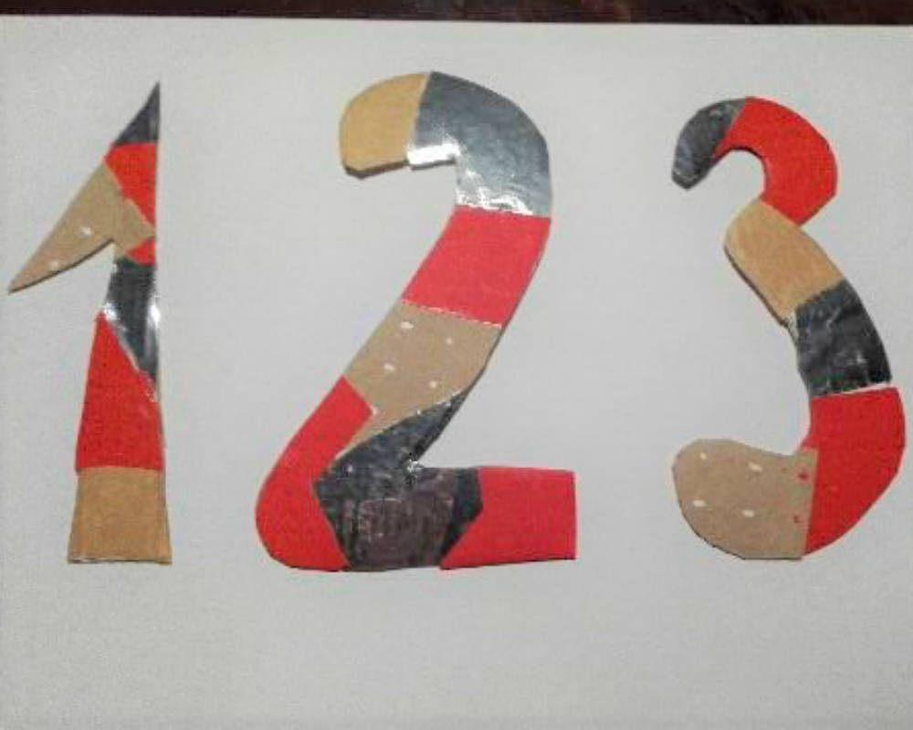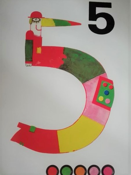 “Il laboratorio è un luogo di creatività e conoscenza, di sperimentazione, scoperta e autoapprendimento attraverso il gioco: è il luogo privilegiato del fare per capire, dove si fa “ginnastica mentale” e si costruisce il sapere…”, condivido alcune foto che mostrano numeri “costruiti con materiale di riciclo: ritagli di cartoncini, carta da pacco, carta regalo. La tecnica utilizzata per colorare le sagome, è quella del collage e i colori che spiccano sono quelli preferiti da Květa.