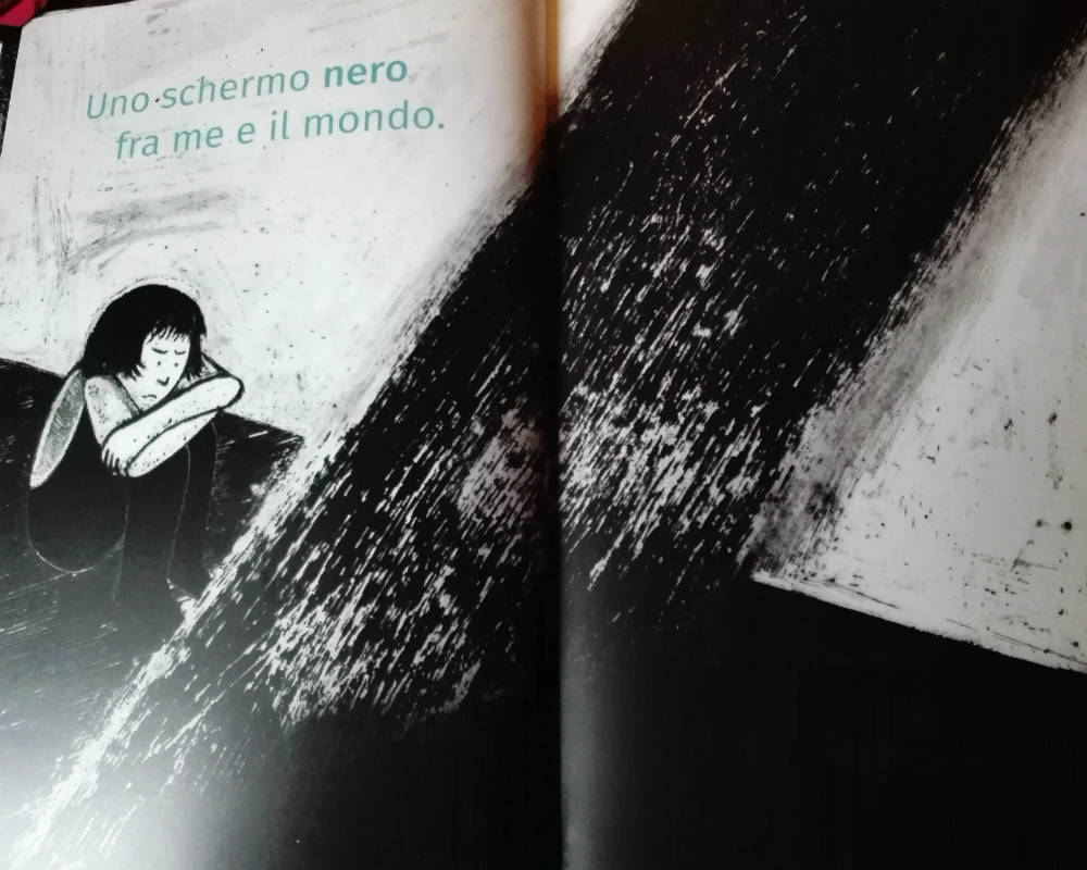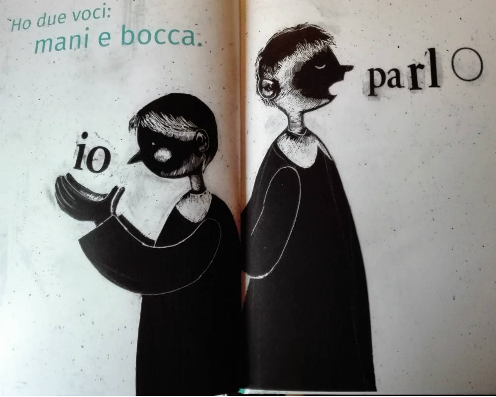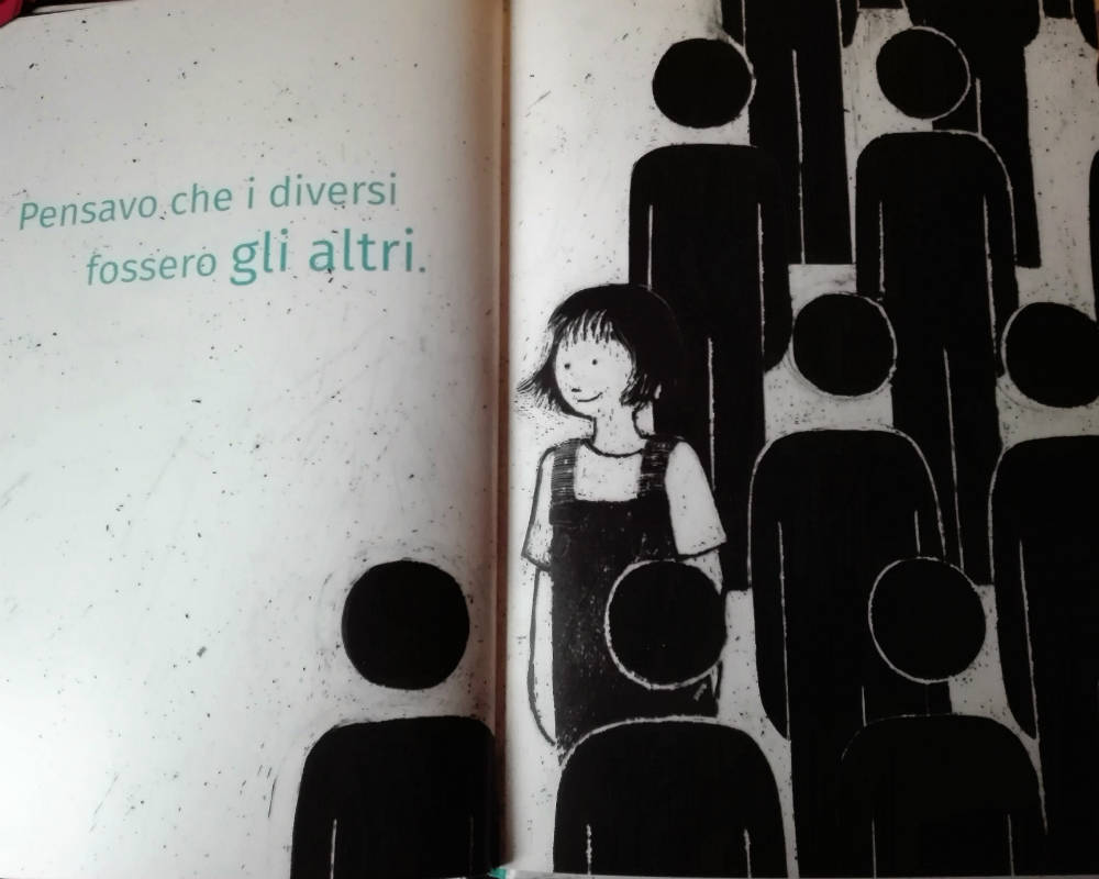 La potenza di questo libro sicuramente è dovuta anche al fatto che la scrittrice ed illustratrice, Monica Taini appunto, è sorda. La sua sordità è stata diagnosticata a 2 anni, a 10 è stata impiantata con il cocleare. Quindi chi meglio di lei poteva raccontare il percorso interiore tortuoso che devono affrontare le persone sorde.