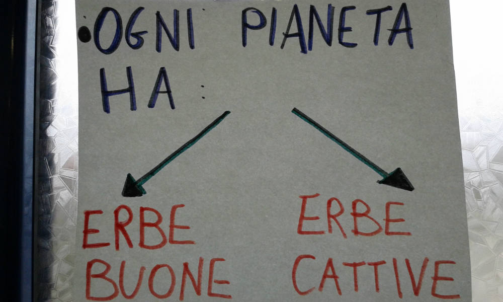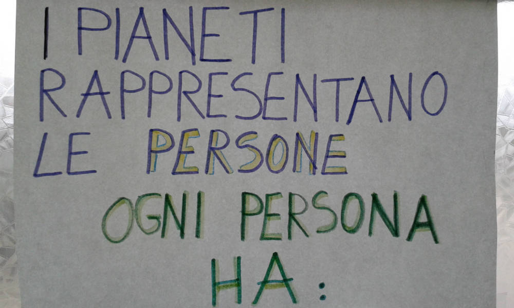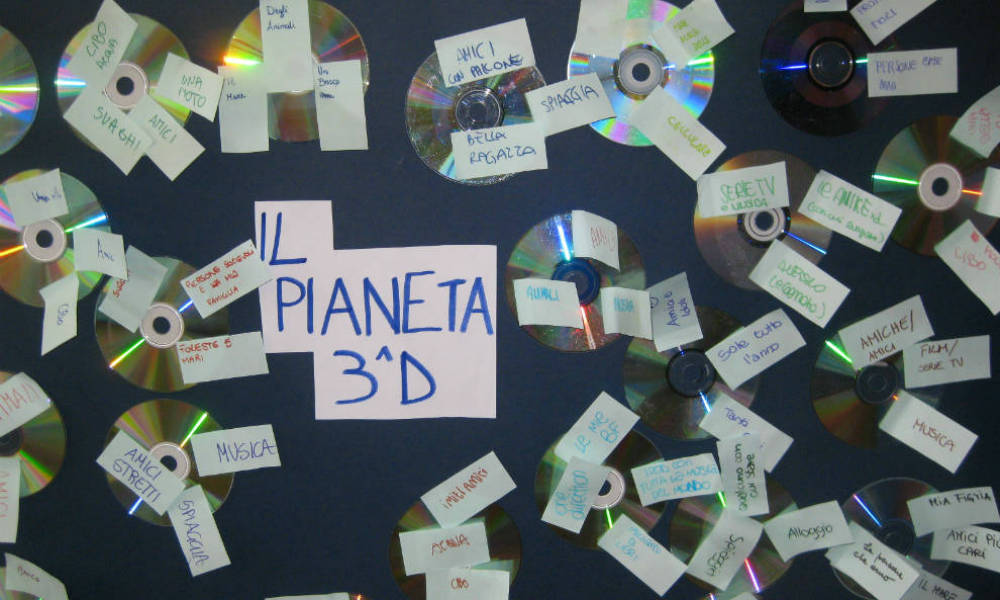 – nel terzo sono stati disposti tanti cd pari al numero degli alunni della classe; i cd rappresentavano i pianeti, pertanto ognuno di loro aveva a disposizione un pianeta su cui scrivere cosa avrebbe voluto/ come lo avrebbe voluto.