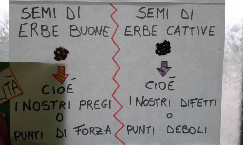 Innanzitutto i pianeti, racconta il Piccolo Principe, hanno semi di erbe buone e semi di erbe cattive. Ma i pianeti rappresentano gli uomini. Ognuno di noi, nel suo pianeta, cioè in sè, ha semi di erbe buone -pregi, punti di forza, e semi di erbe cattive i difetti o punti deboli.