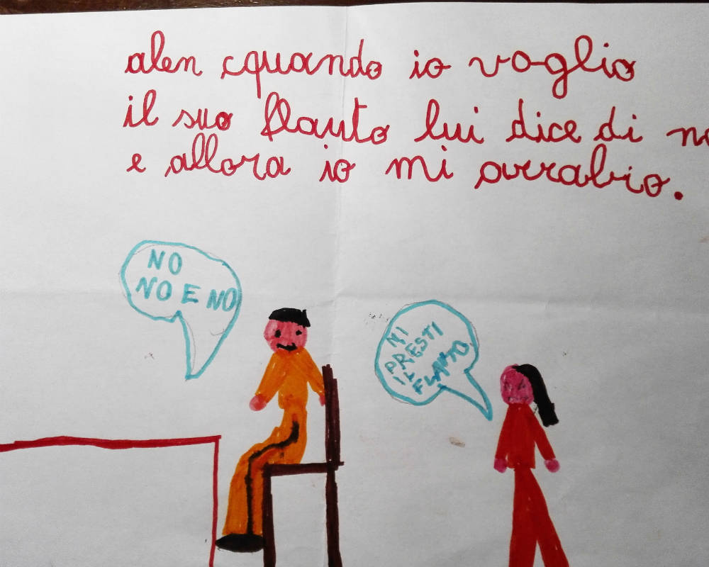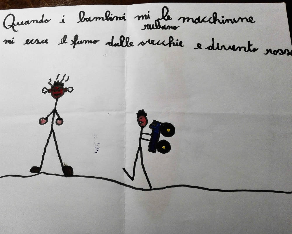 Dopo esserci concentrati su Anna, ho chiesto ai bambini di concentrarsi su loro stessi: “A voi è mai capitato di provare rabbia? Se qualcuno ha voglia di condividere la sua esperienza può farlo…” . Un alunno ha iniziato un pò titubante, quasi vergognandosi. E’ stato necessario rassicurare i bambini rispetto al fatto che la rabbia è un’emozione come le altre, non è sbagliata e non ci si deve sentire sbagliati o in colpa se la si prova.