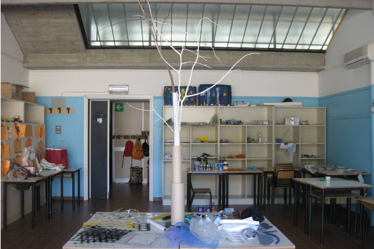 Poi si è passati all’albero della diversità: su una delle tre isole, svettava un “albero nudo” circondato da materiale di scarto: i bambini sono stati invitati a scrivere su di un cartoncino una delle caratteristiche personali che li rende diversi dagli altri. Il cartoncino doveva essere poi attaccato all’albero della diversità insieme ad un “pezzo di scarto” che aveva suscitato la loro curiosità.