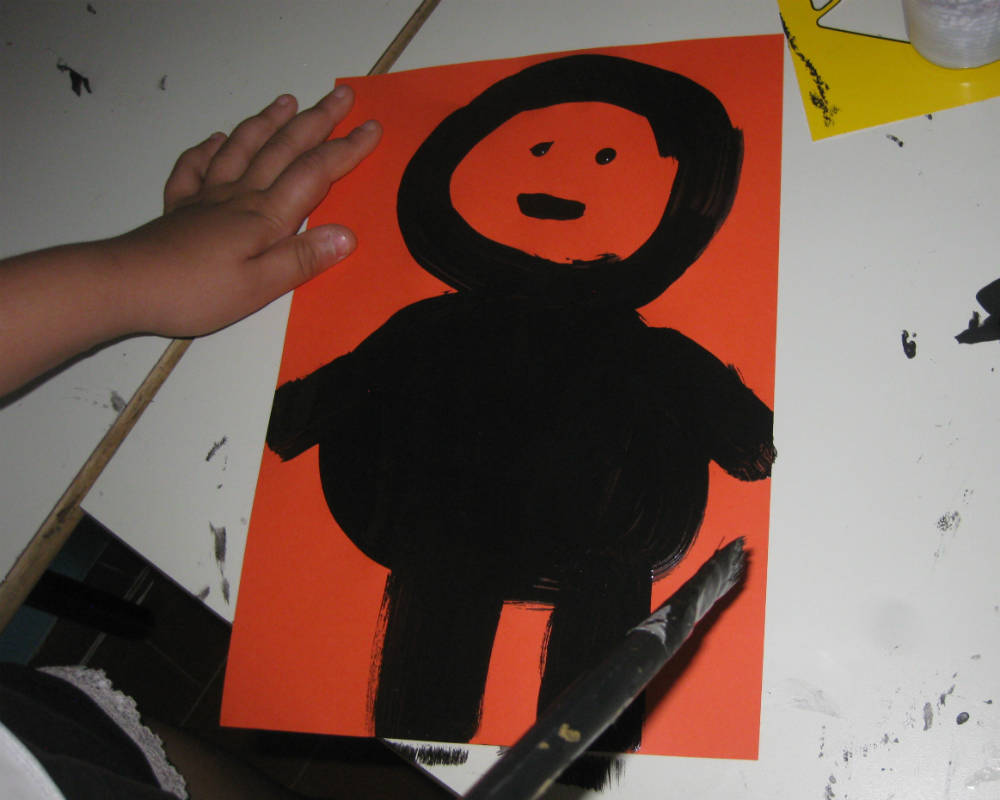 Forti di tutti questi concetti, ho invitato ciascun bambino a disegnare direttamente con il pennello nero (senza matita e gomma) un “BAMBINO CORVO”