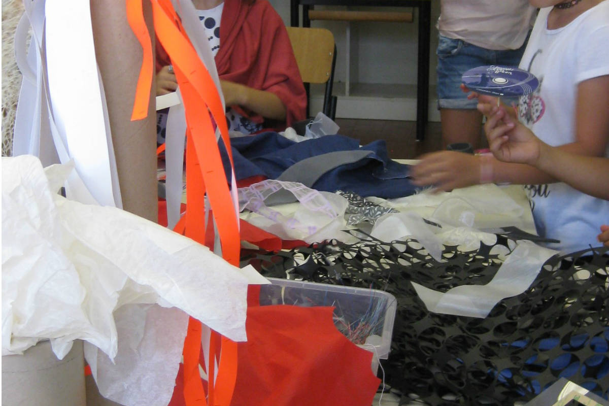 Molto emozionante è stato vedere lo stupore dei loro occhi e delle loro mani quando hanno fatto la conoscenza dei materiali di scarto di Re Mida e la loro voglia di costruire, creare, mettere in moto la fantasia.