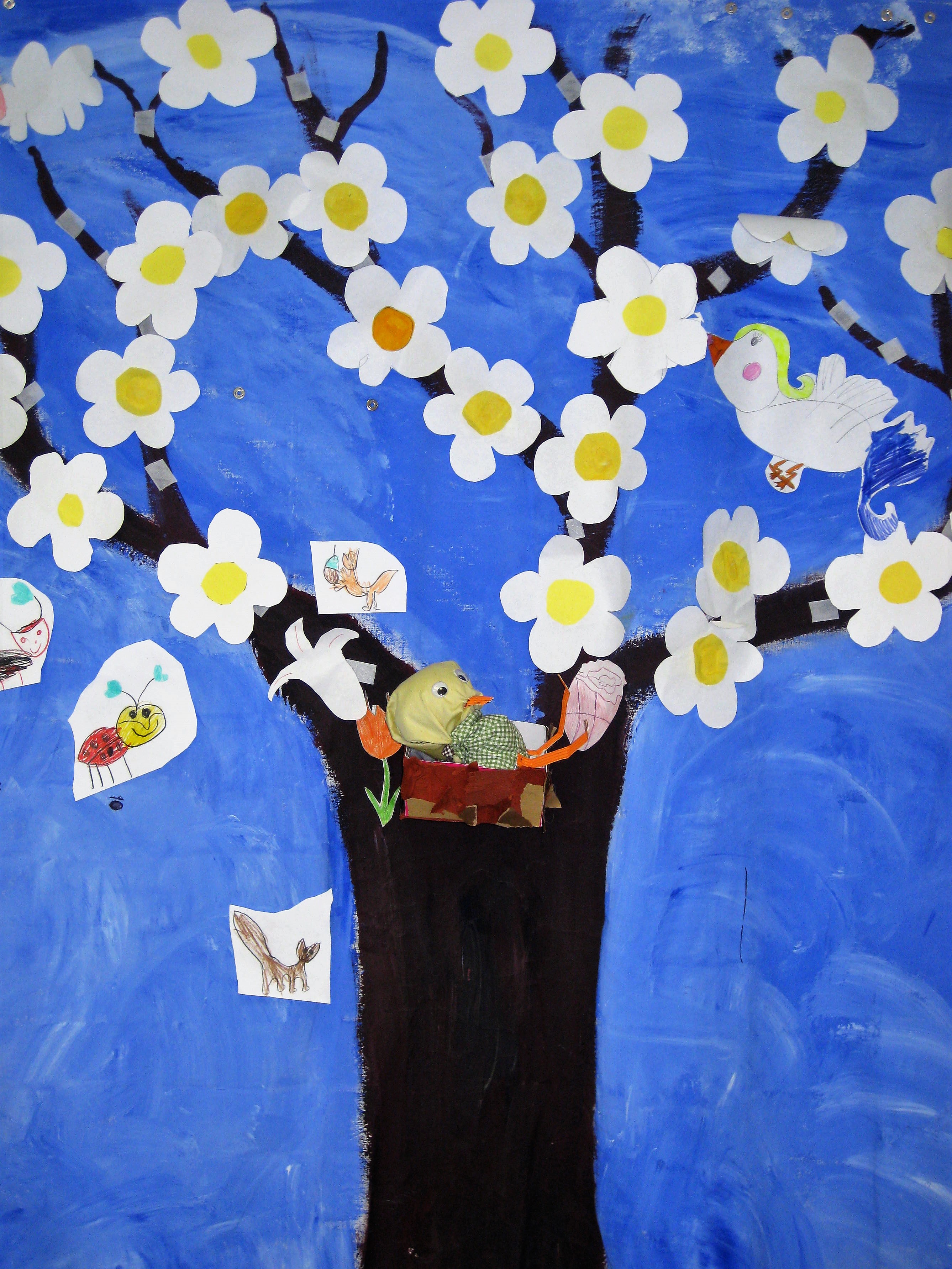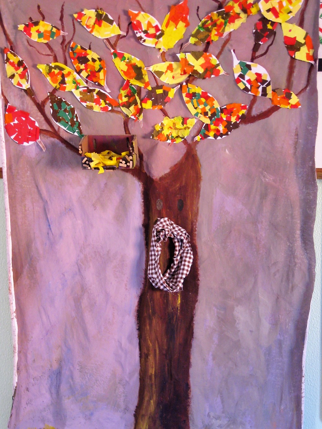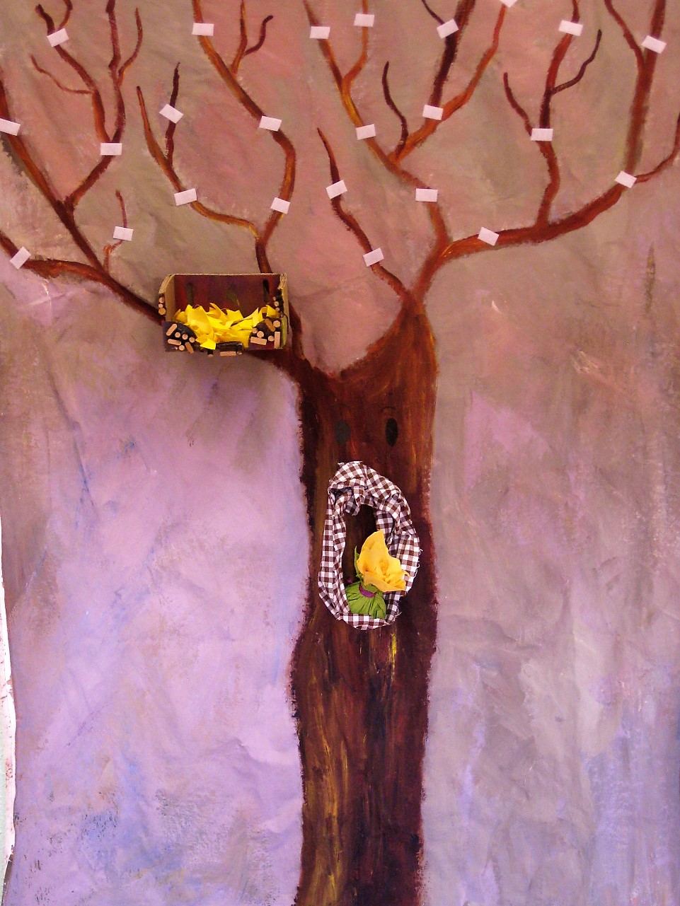 Il murales, aveva come soggetto un grande albero con rami spogli (ai quali è stato attaccato del velcro), in modo che, a seconda delle stagioni, potesse essere vestito e svestito di foglie, palline di Natale, fiocchi di neve,fiori,ecc. a seconda del periodo annuale e delle stagioni.