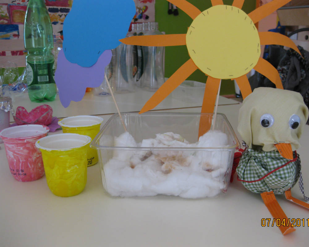Ogni bambino, come l’uccellino Arturo, ha piantato alcuni semini in bicchierini di plastica con ovatta inumidita così è stato possibile osservare, tutti insieme, la nascita e la crescita delle piantine e nel contempo capire cosa significa prendersi cura di un qualcosa che è vivo e che dipende dalle tue attenzioni.