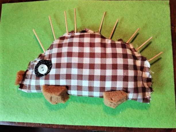 Ho costruito gli animaletti con materiale di riciclo (spugne,stoffe,bottoni ecc.).