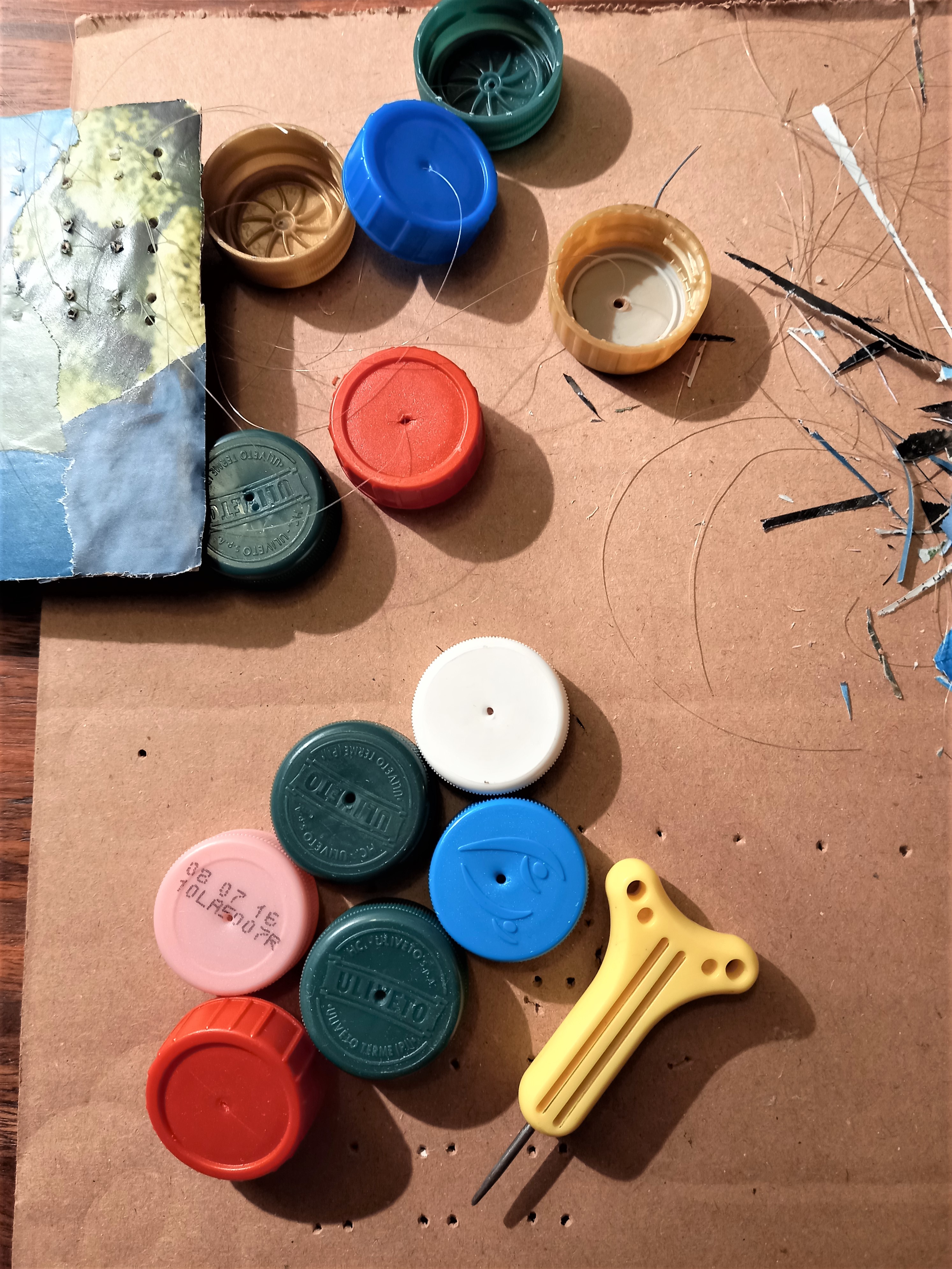 Ho provato a costruire lo stesso strumento utilizzando, al posto delle chiavi, dei tappi di plastica riciclati.
