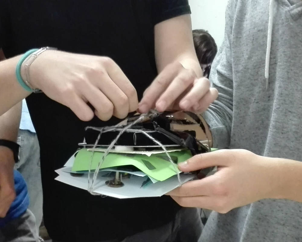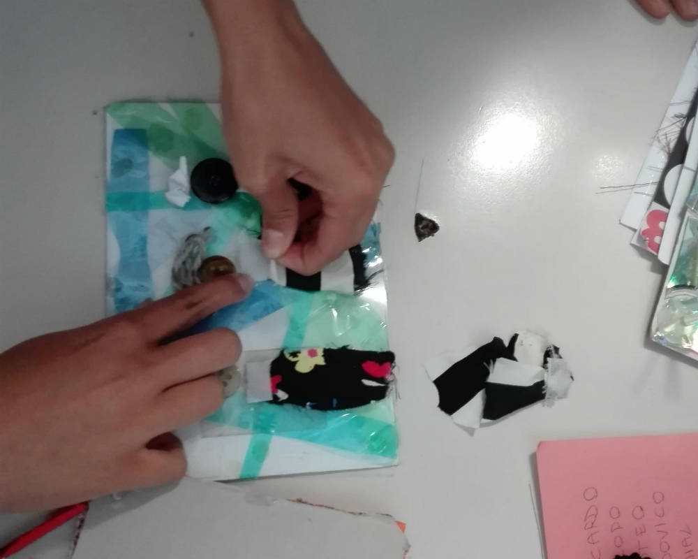 Nel secondo incontro i ragazzi, divisi in quattro gruppi, si sono sperimentati in un’attività artistico-manuale. Con materiale proveniente da Re Mida, centro di riuso creativo di scarti aziendali, hanno dovuto realizzare dei libri polimaterici che dovevano affrontare i temi trattati durante il primo incontro.