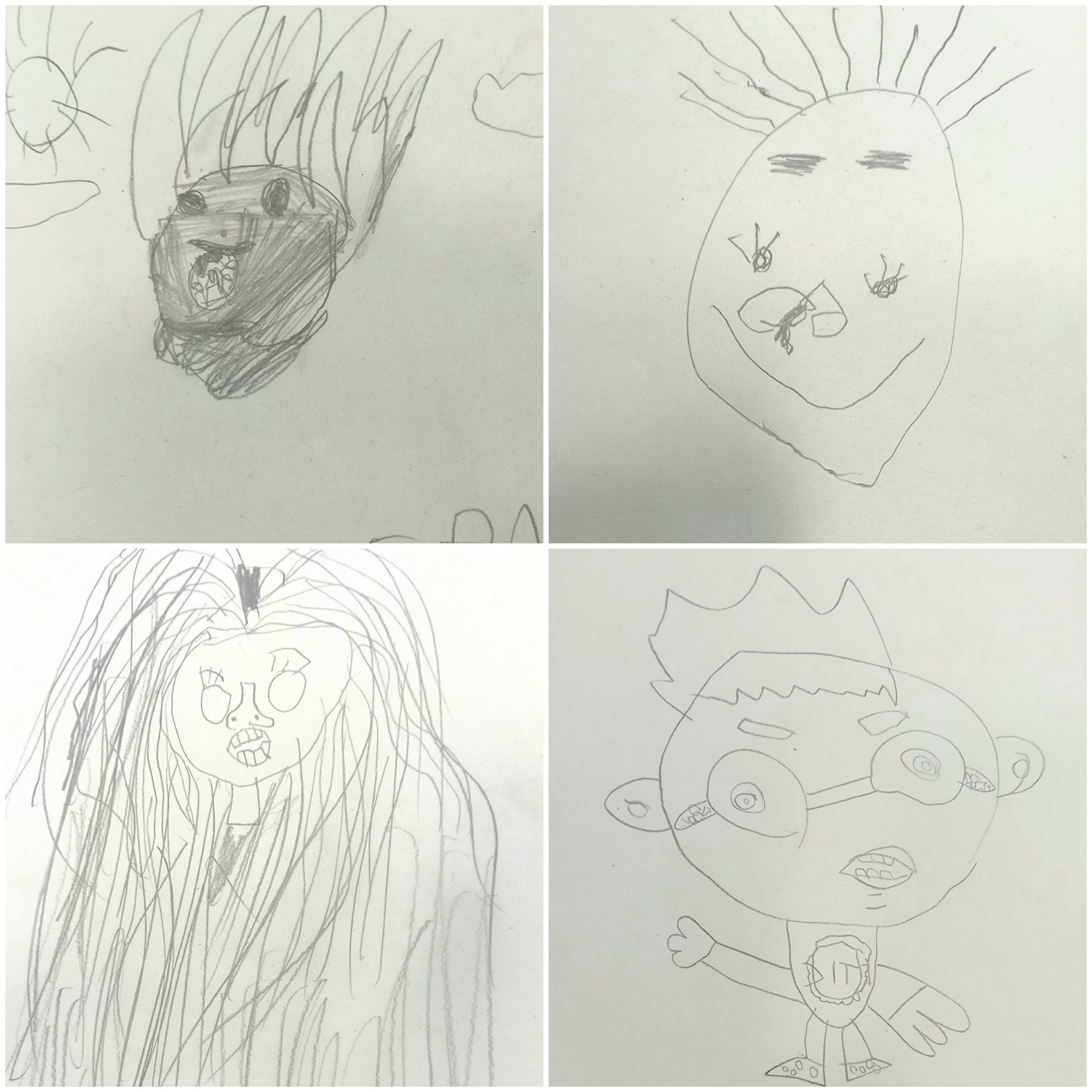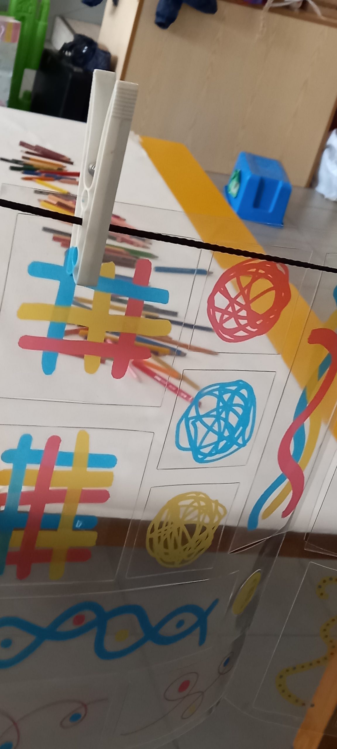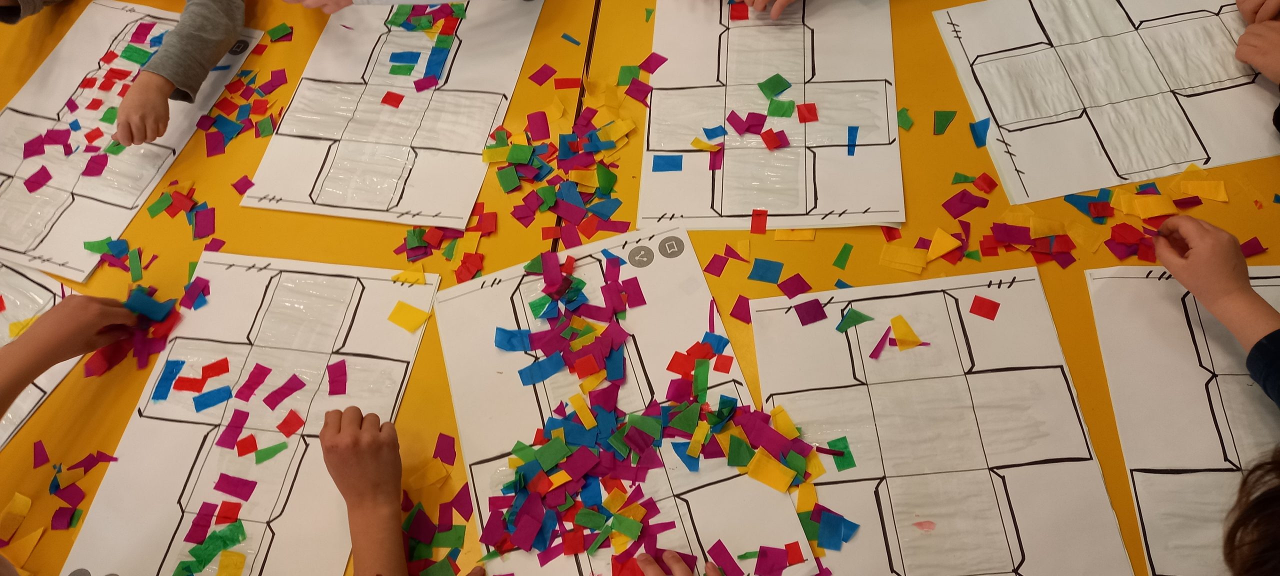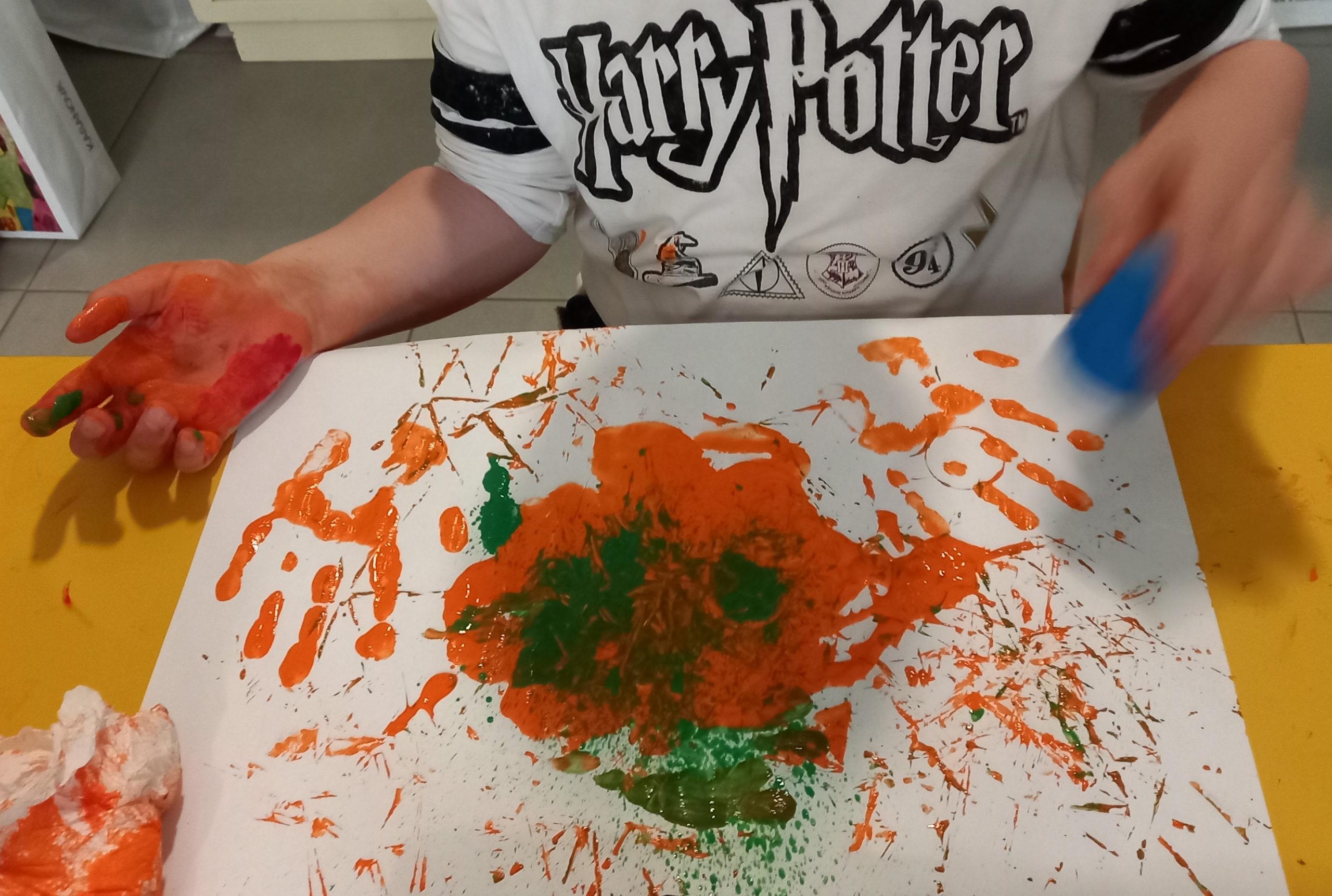 -attività: ispirati dalle opere di Hervè Tullet, riempiamo con colori e disegni, le sagome preparate nell’incontro precedente.