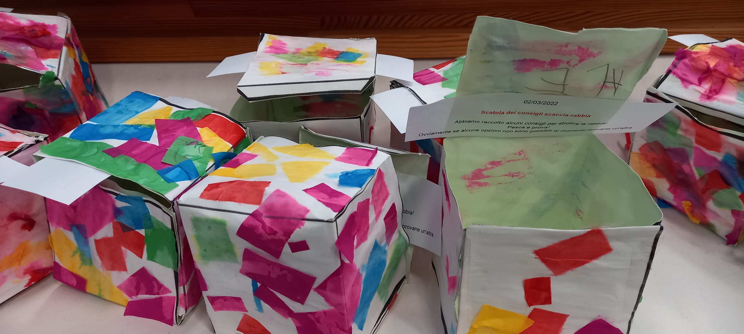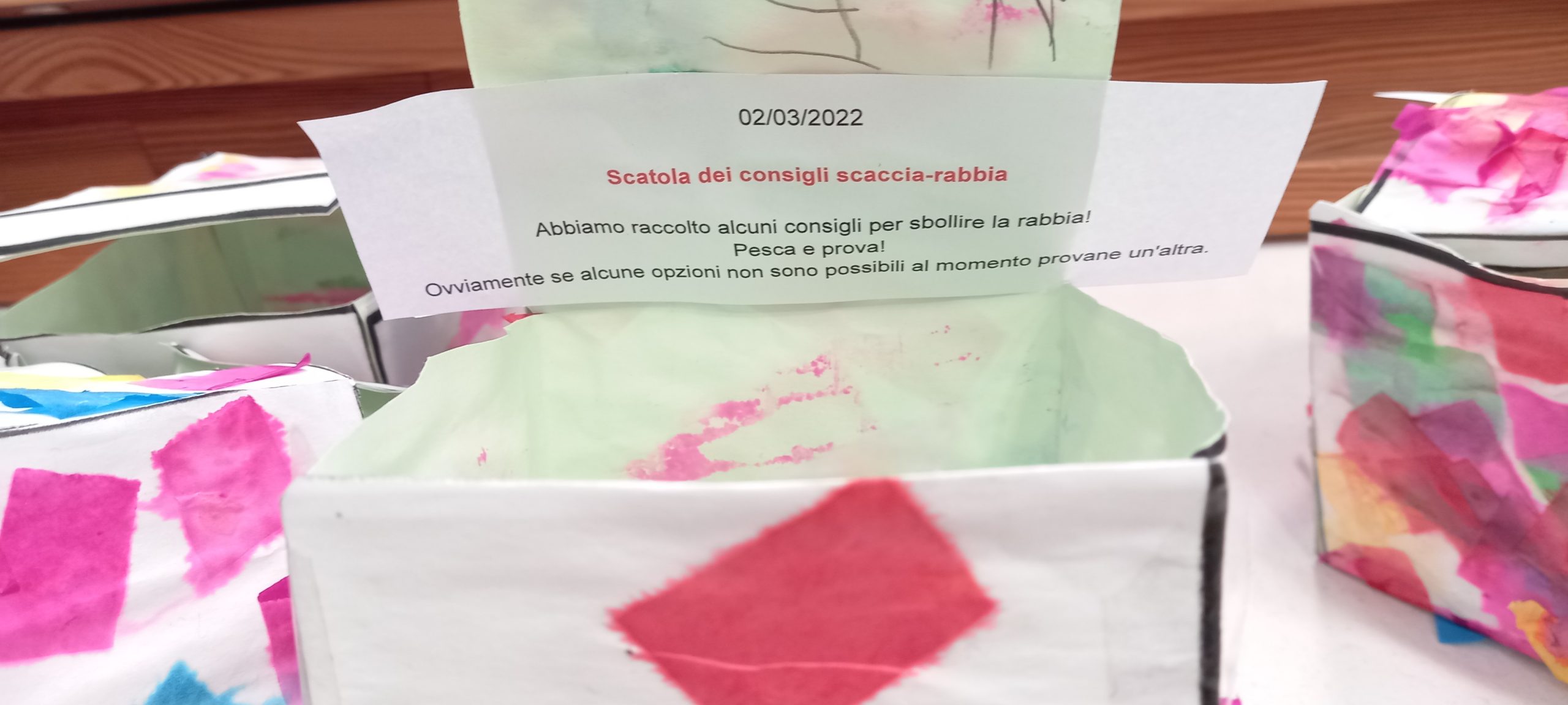 – attività: realizzazione della scatola sbolli-rabbia con, all’interno, i metodi trovati, dai bambini, nello scorso incontro.