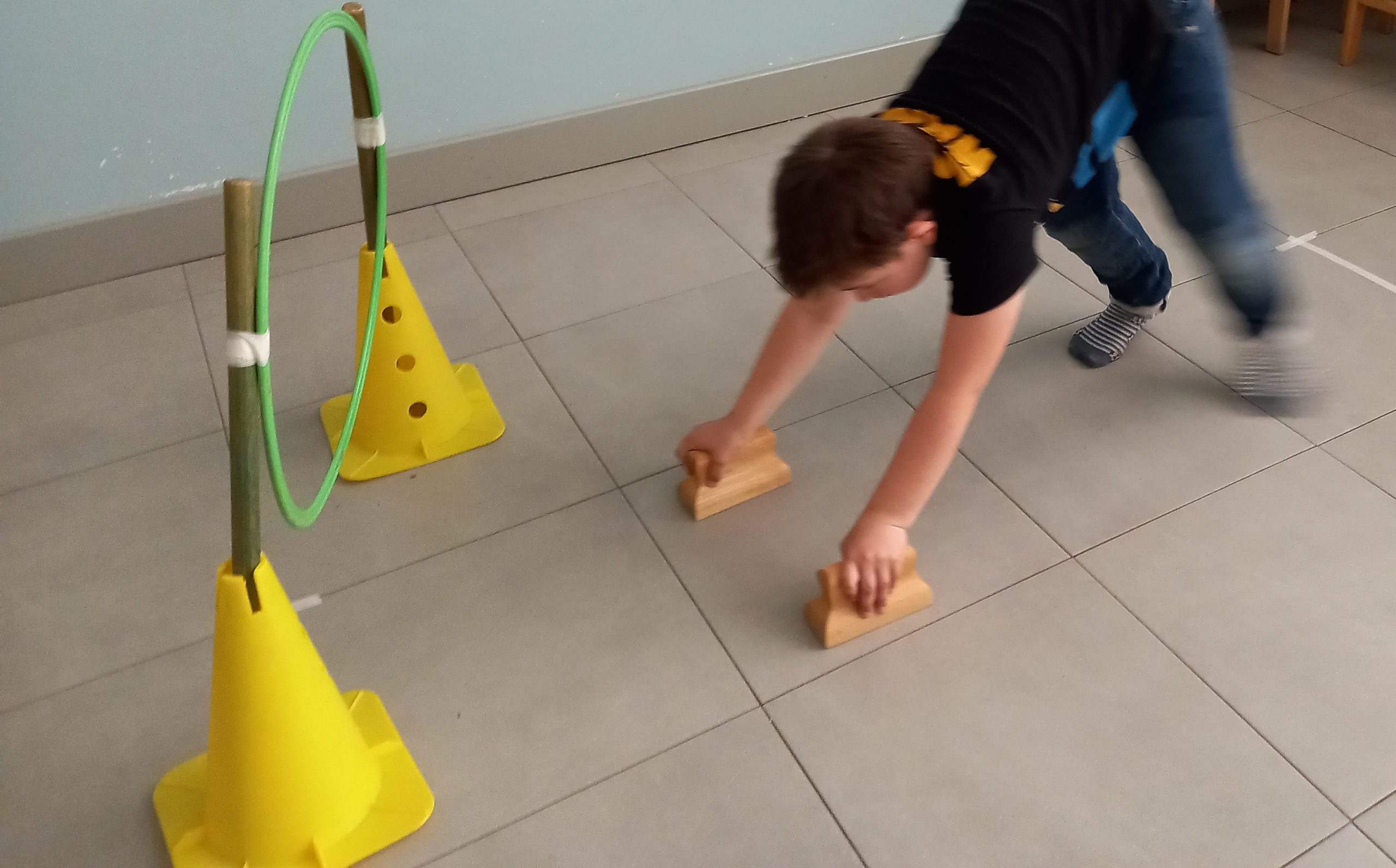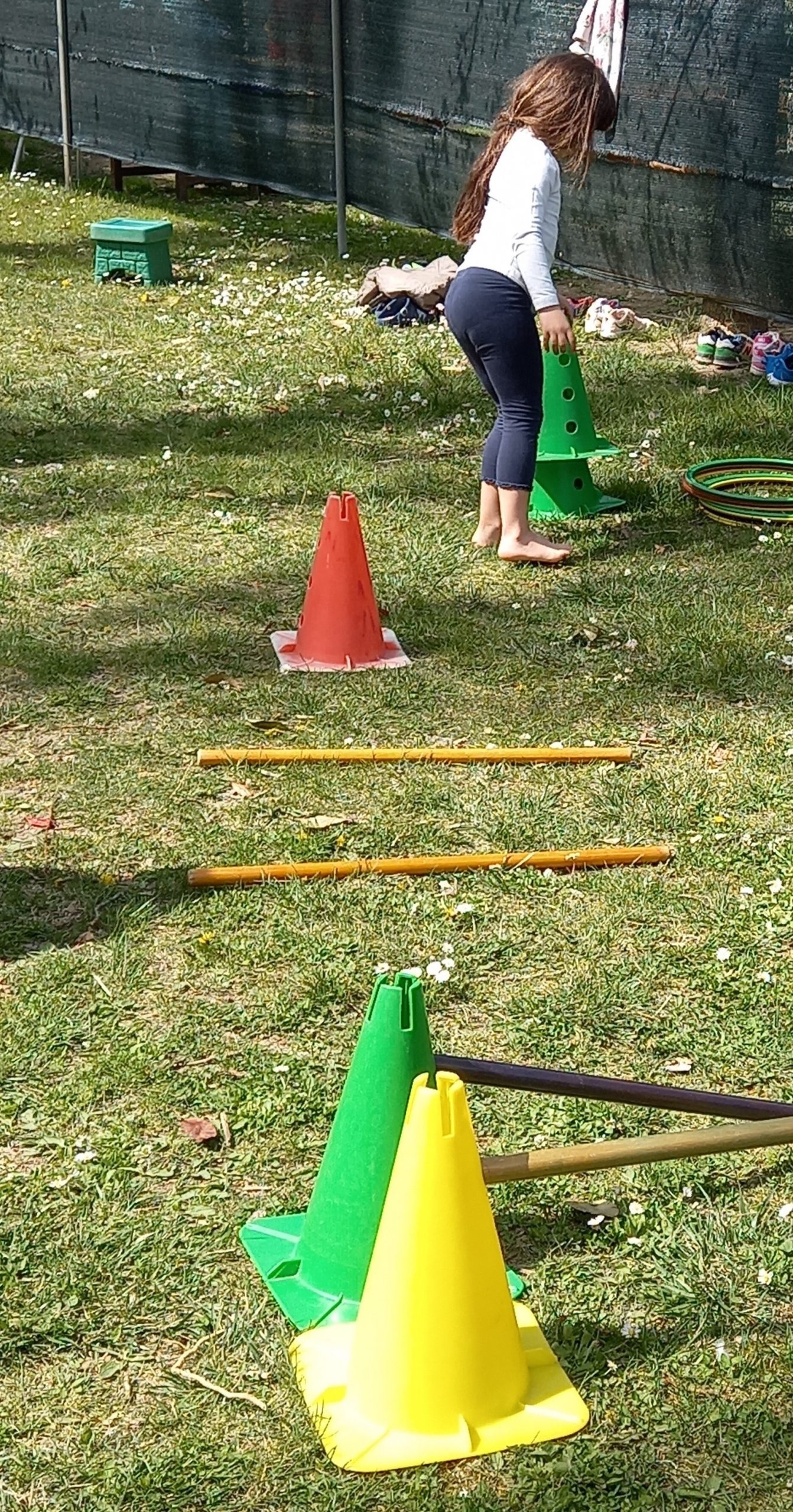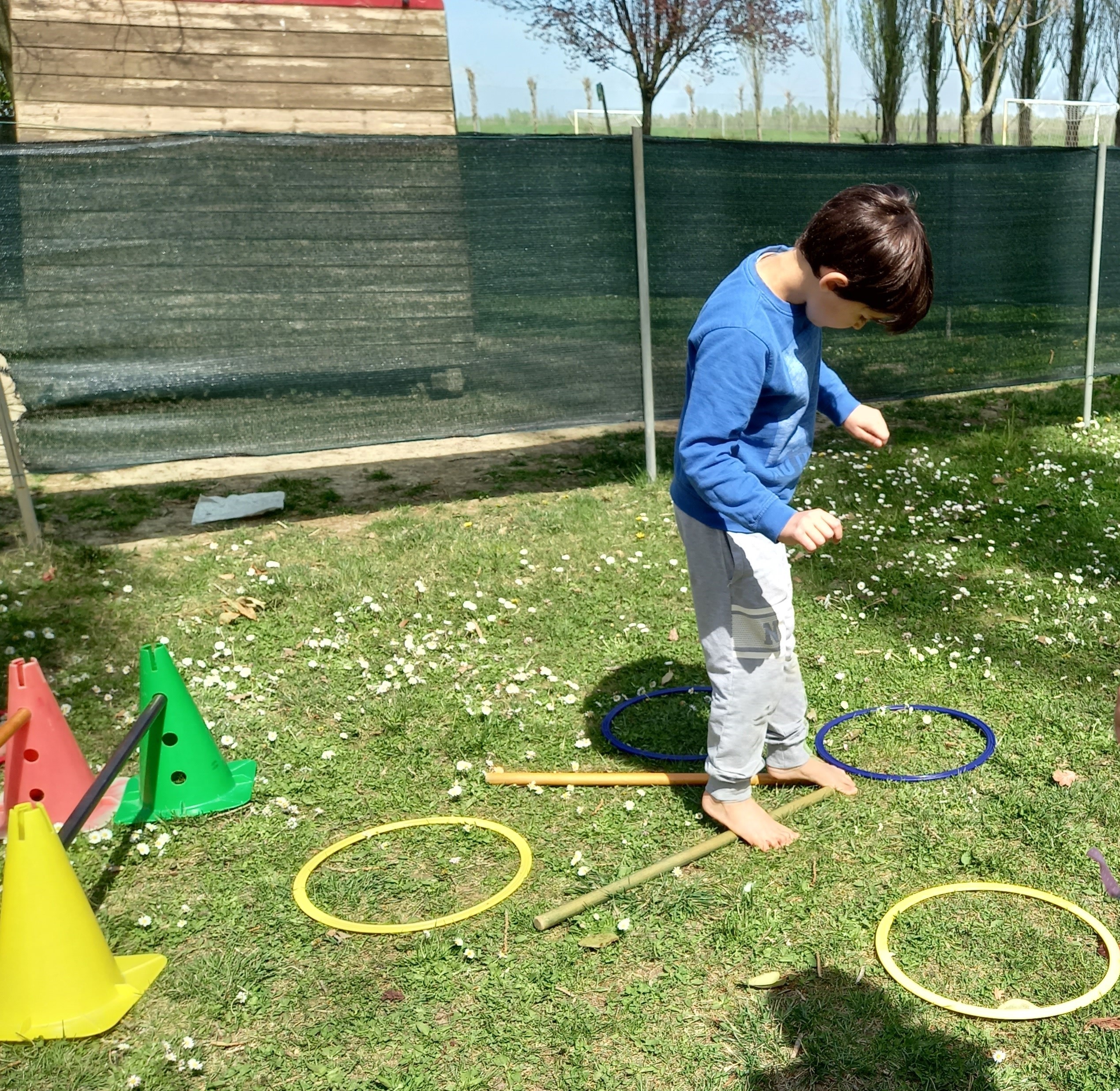 -attività: il percorso motorio della felicità – ogni bambina/o ha a disposizione materiale motorio per progettare un percorso che poi tutti i compagni, sperimenteranno