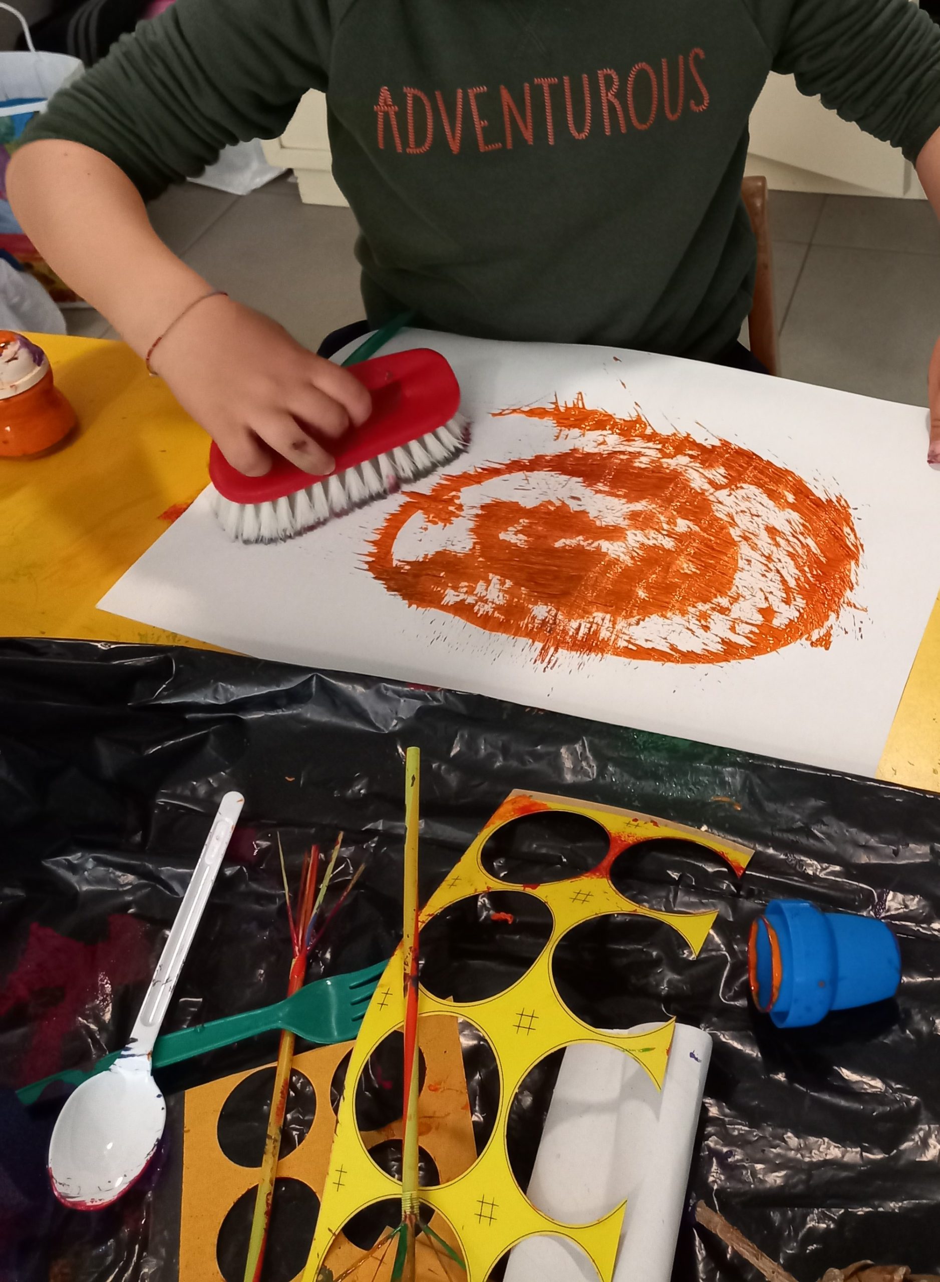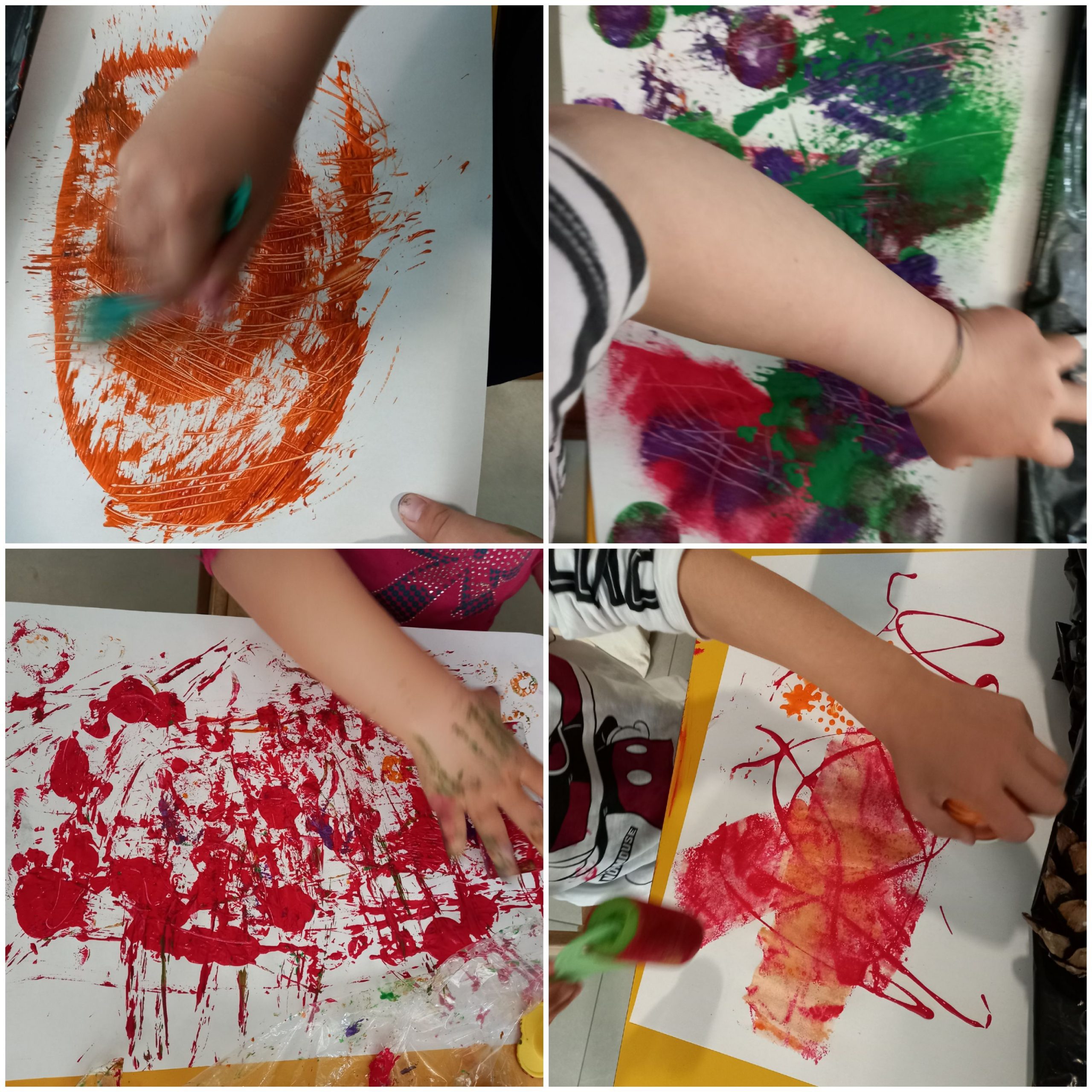 -attività: felicità è tempere in libertà con pennelli molto alternativi (opera individuale)