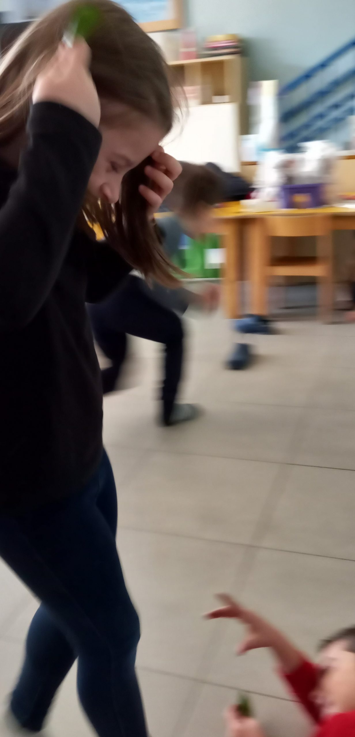 Conclusa la lettura, nel giardino della scuola, ogni bambino ha cercato una foglia per poi farla danzare al “ritmo” di alcune emozioni