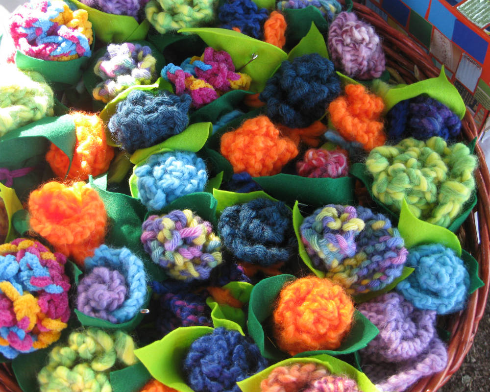 Lascio anche un assaggio di lavori che abbiamo realizzato con ferri e lana e con un telaio costruito con materiali di riciclo.