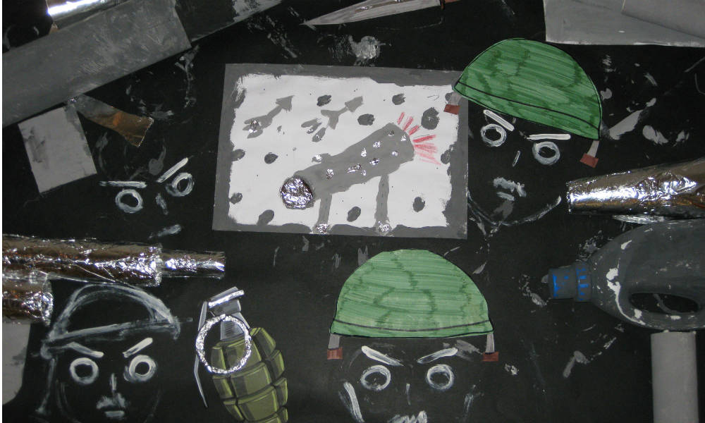Convinta che ci sarebbero state grosse difficoltà a rompere il ghiaccio su un tema così pesante, sono stata immediatamente smentita poiché i bambini hanno subito saputo esprimere, condividere, in modo chiaro e serio, la loro idea di pace e di guerra dando sia un’interpretazione generale che personale dei due concetti.