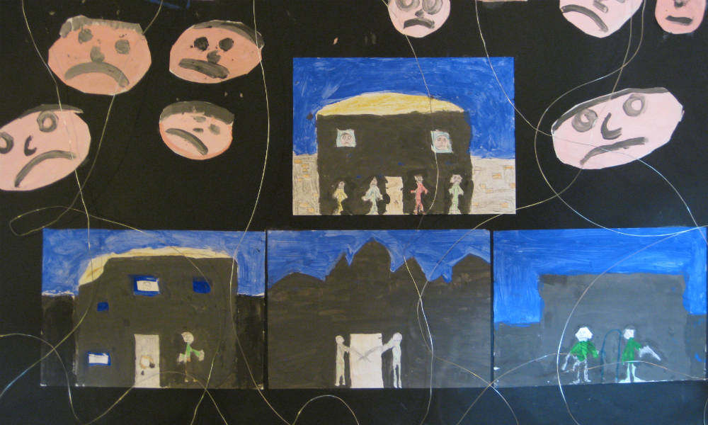 Gli interventi dei bambini sono stati scritti su di un grande cartellone. Durante il secondo incontro, rileggendo quanto avevano detto nel primo, è nata la voglia di illustrare le loro parole attraverso dei quadri.