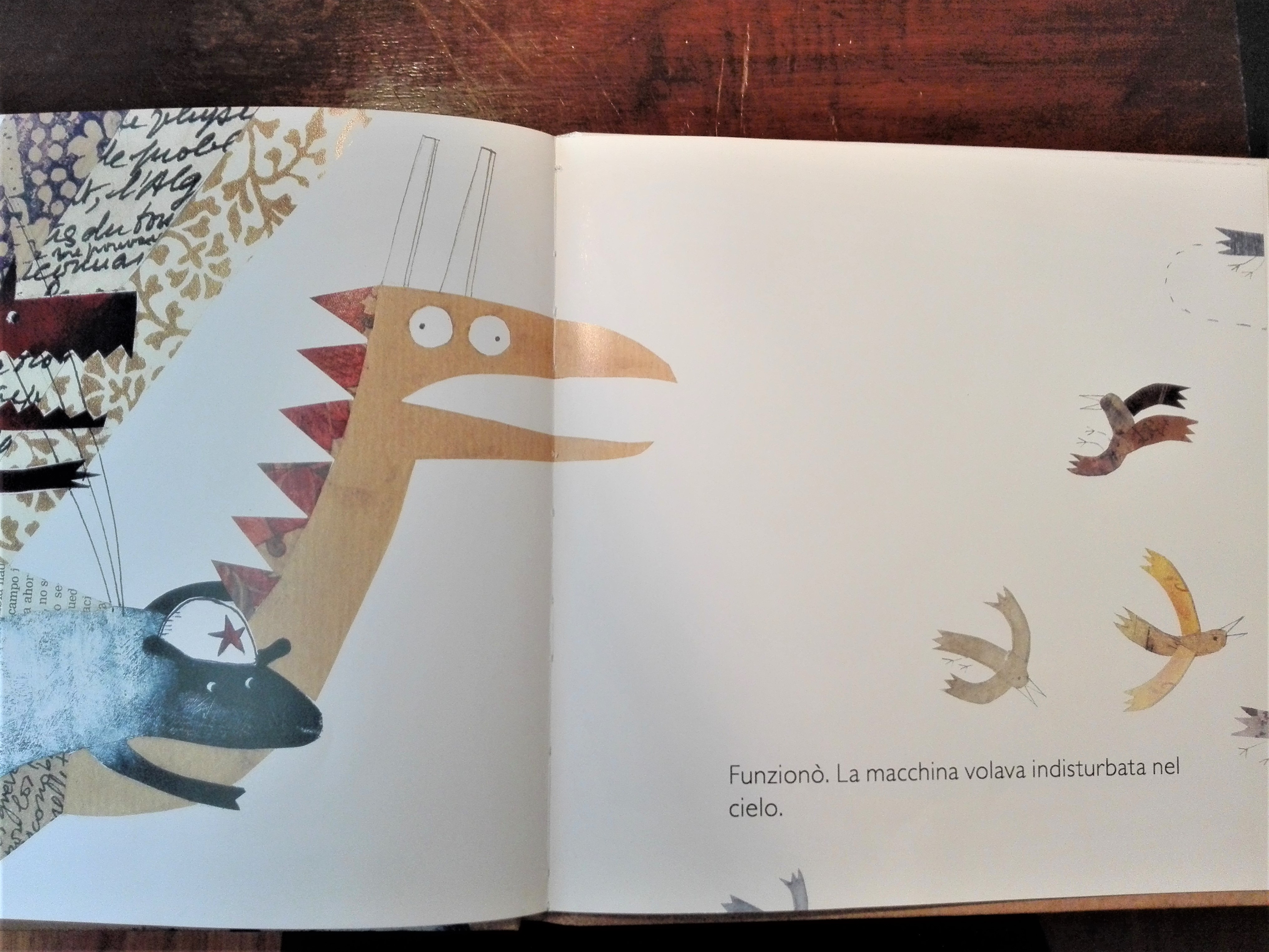 Ma ritentarono ancora una volta. La pecora ebbe una nuova idea: fece ritagliare al lupo una coda di drago, lei si occupò della testa. Funzionò. la macchina volava indisturbata nel cielo.